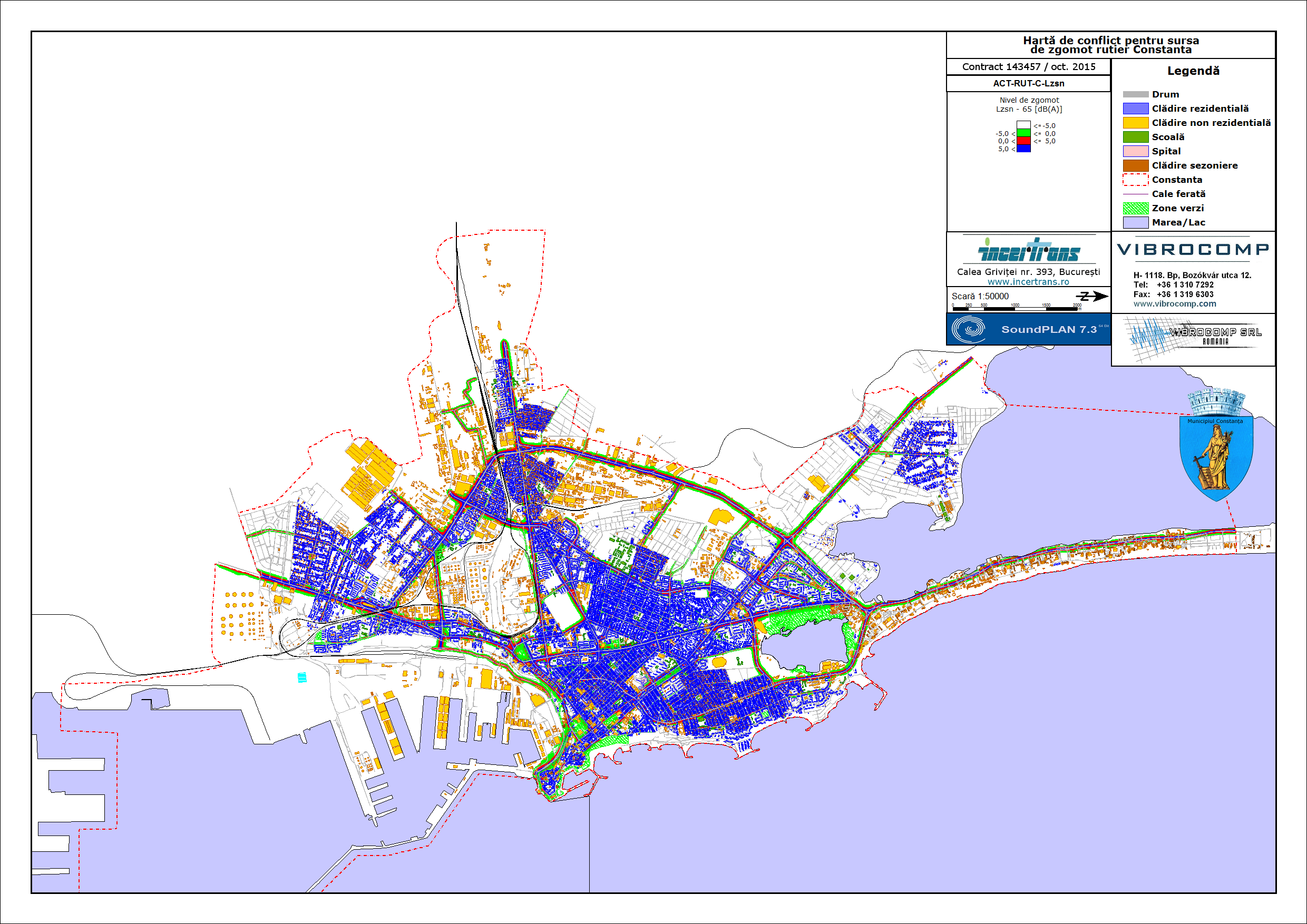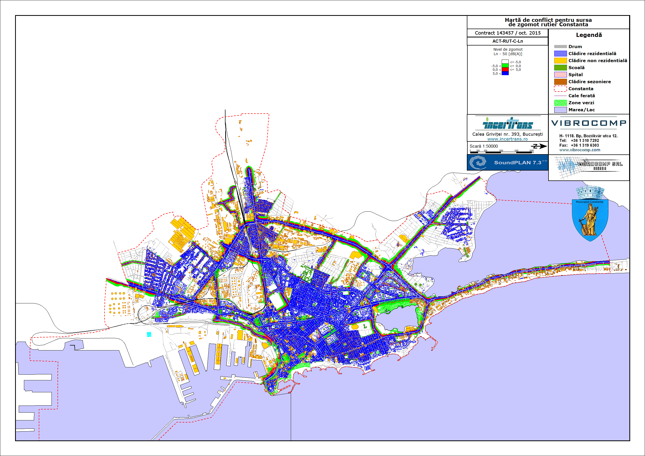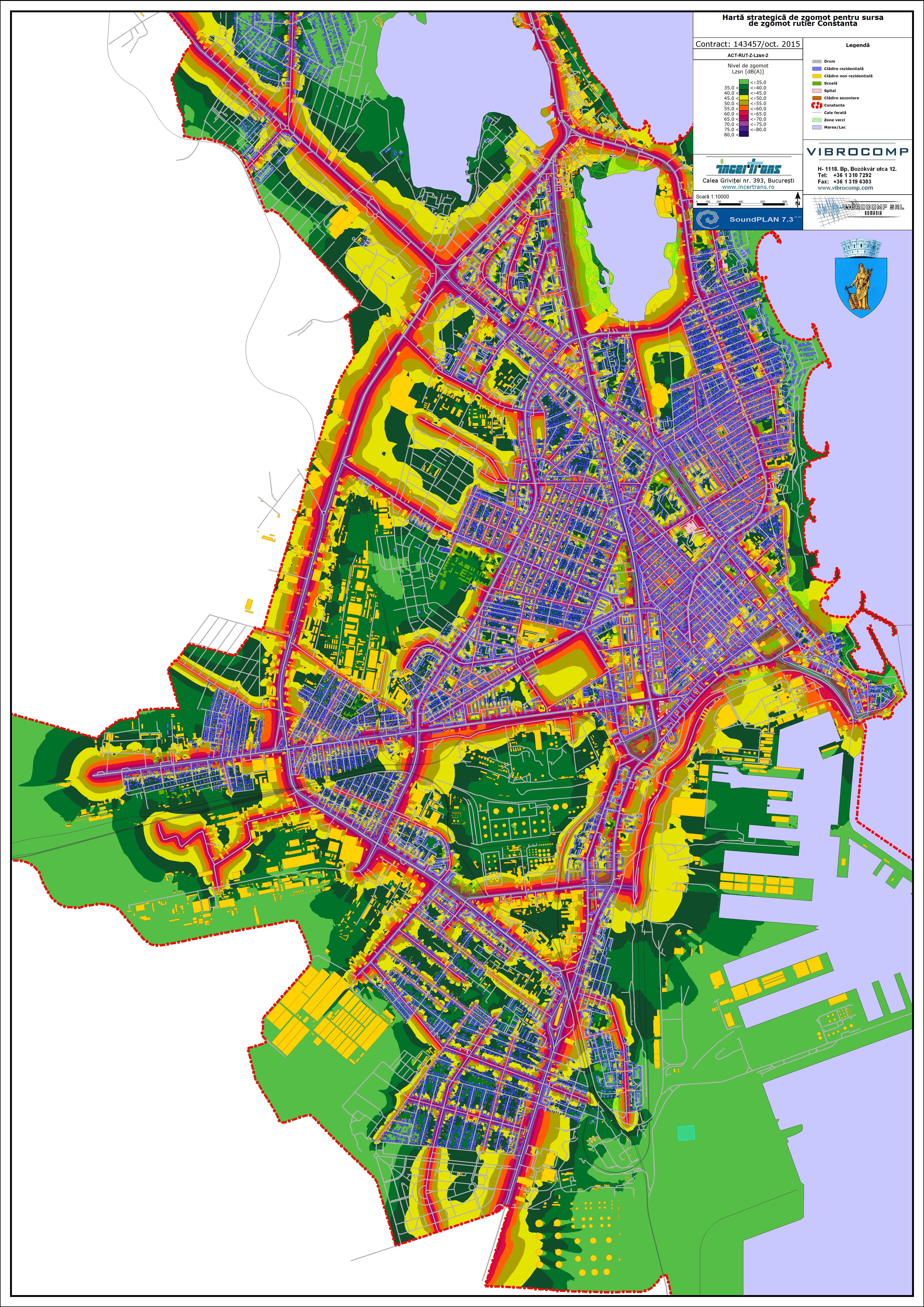 harta diferenta zgomot trafic rutier indicator Lzi-seara-noapte-A3